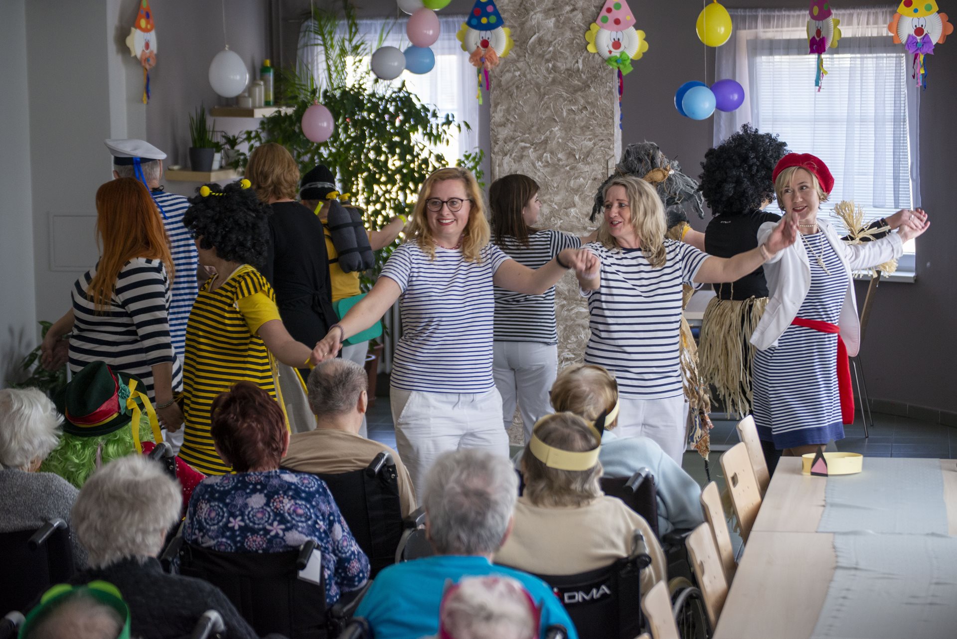 Letos se k masopustnímu veselí připojily i naše pečovatelky. V barevných kostýmech a maskách plných fantazie, s úsměvem na tváři a hravou energií dokázaly vytvořit neopakovatelnou atmosféru.